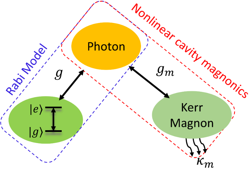 该工作以题为《Switchable superradiant phase transition with Kerr magnons, Phys. Rev. A 108, 033704 (2023)》发表在理论物理国际一流期刊Phy. Rev. A上。兰州大学博士刘刚(3044永利集团物理系2016级硕士研究生)为第一作者,3044永利熊伟博士和兰州大学应祖建研究员为论文共同通讯作者。此项研究得到了国家自然科学基金和安徽省自然科学重点项目等项目的支持。
