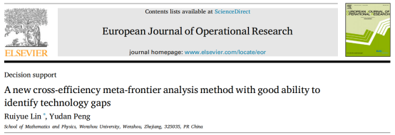 近日,3044永利林瑞跃教授以第一和通讯作者身份与其硕士研究生彭玉丹合作在国际运筹管理领域顶级期刊EJOR发表题为《A new cross-efficiency meta-frontier analysis method with good ability to identify technology gaps》的论文。