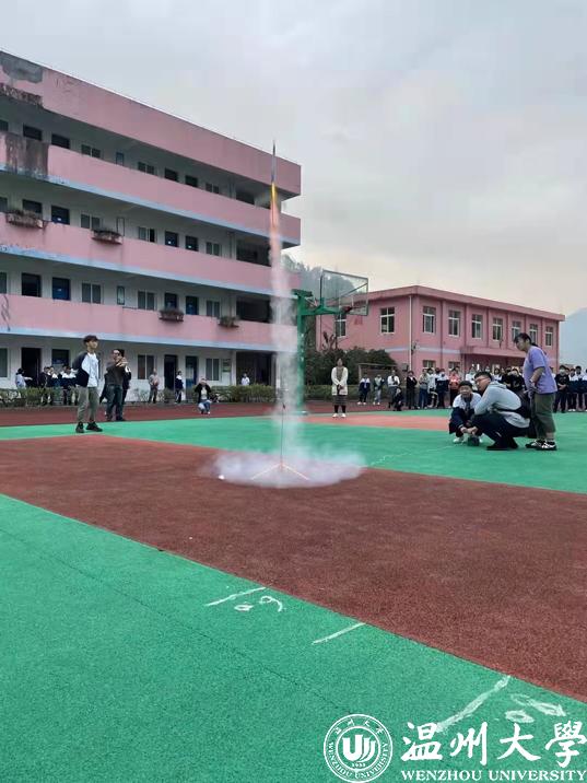 “火箭发射成功啦”“太震撼啦”……望着搭载着滑翔机的火箭发射升空,操场上的老师同学们刹那间欢呼起来,只看得见火箭载着飞机直插天宇,而后飞机在推力之下,顺利开始征程,在天空中一圈圈盘旋……