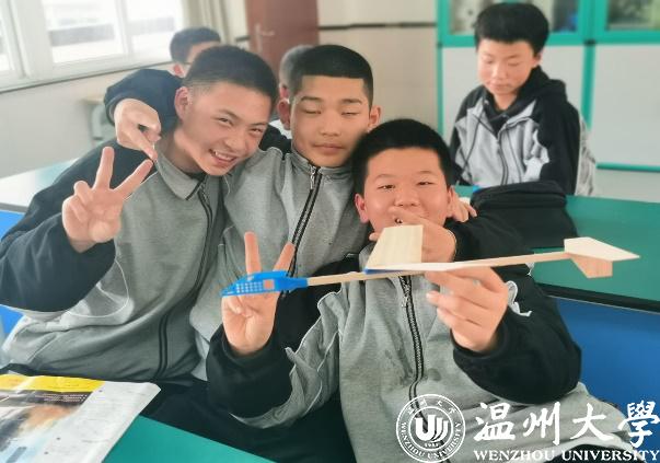 活动中,十九中的同学们分成两队,一队齐聚报告厅,认真聆听由温州市物理学会理事长董长昆老师的主题讲座,讲座主题围绕近期大热的碳材料和纳米技术展开。另一队在讲解员的指导下进行“小飞机”的制作,最终在讲解员的细心讲解及耐心指导下同学们都做出了属于自己的小飞机,并在操场上成功放飞。