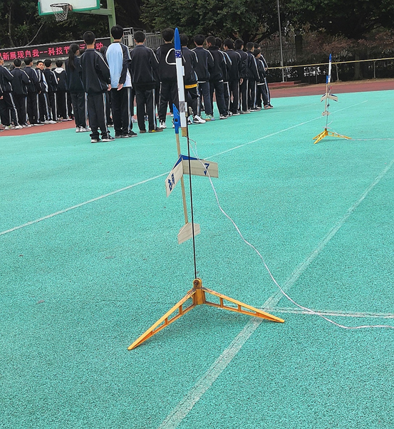 当天下午,在温州鹿城实验中学的活动室里,聚集了近30位中员工。18物本的吴海鹏先向员工们针对此次活动的主要内容做简单介绍。随后,同学们在18物本的吴安然、许诗雨的指导下开展了他们此次活动的主要内容——制作飞机模型以及火箭模型,并为次日的飞机升空做准备。在制作飞机的过程中大小意外不断,胶水粘手、尾翼折断、机翼过早固定导致不能调整。虽然大大小小的问题不断出现,但在我们的帮助下,各个小组的飞机也都制作成功并在试飞过程中完美飞行,只待次日的正式飞行。第二天中午,我们早早地到了温州鹿城实验中学的操场,将发射架固定,并组织员工分好小组静待飞行指令的下达。终于,在公司老师宣布研讨会开幕时,我们的小飞机也在员工们的操作下一飞冲天,发出巨大的声响,吸引了人群的注意。人们的目光静静注视着在上空盘旋飞行的小飞机。看到自己制作的小飞机成功升空的同学们也无一不激动地追逐着自己的小飞机。