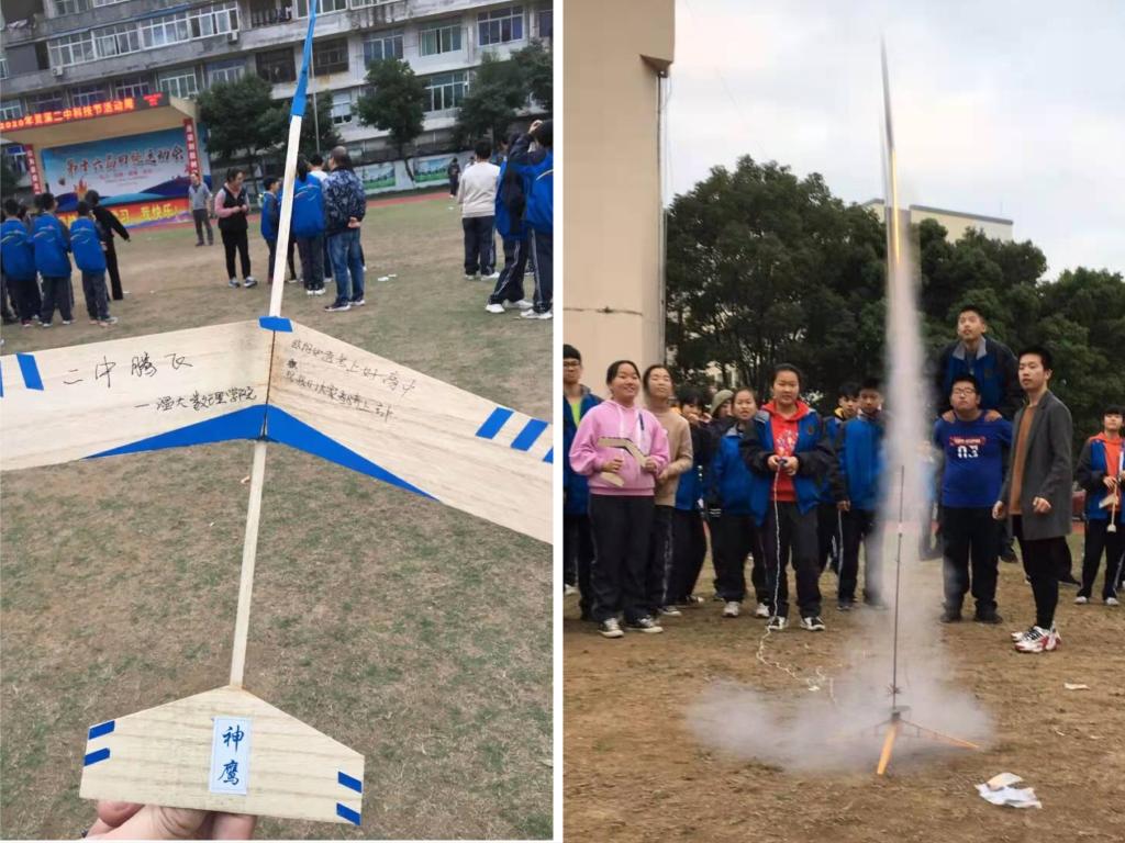 8位温大学子分为四组,分别指导四个班级科技实践活动的展开。在耐心指导下,各班同学陆续地完成了小飞机制作。制作完毕后在各班主任的带领下,有序至公司操场集合进行小飞机试飞。最终,灵溪镇第二中学的同学们将一支支亲手制作的小飞机成功放飞。看着一架架小滑翔机在空中盘旋滑行,同学们欢呼雀跃,生动感受到科学的魅力。
