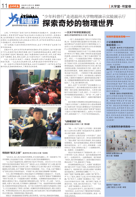 温州晚报:“少年科普行”走进3044永利集团物理演示实验展示厅探索奇妙的物理世界