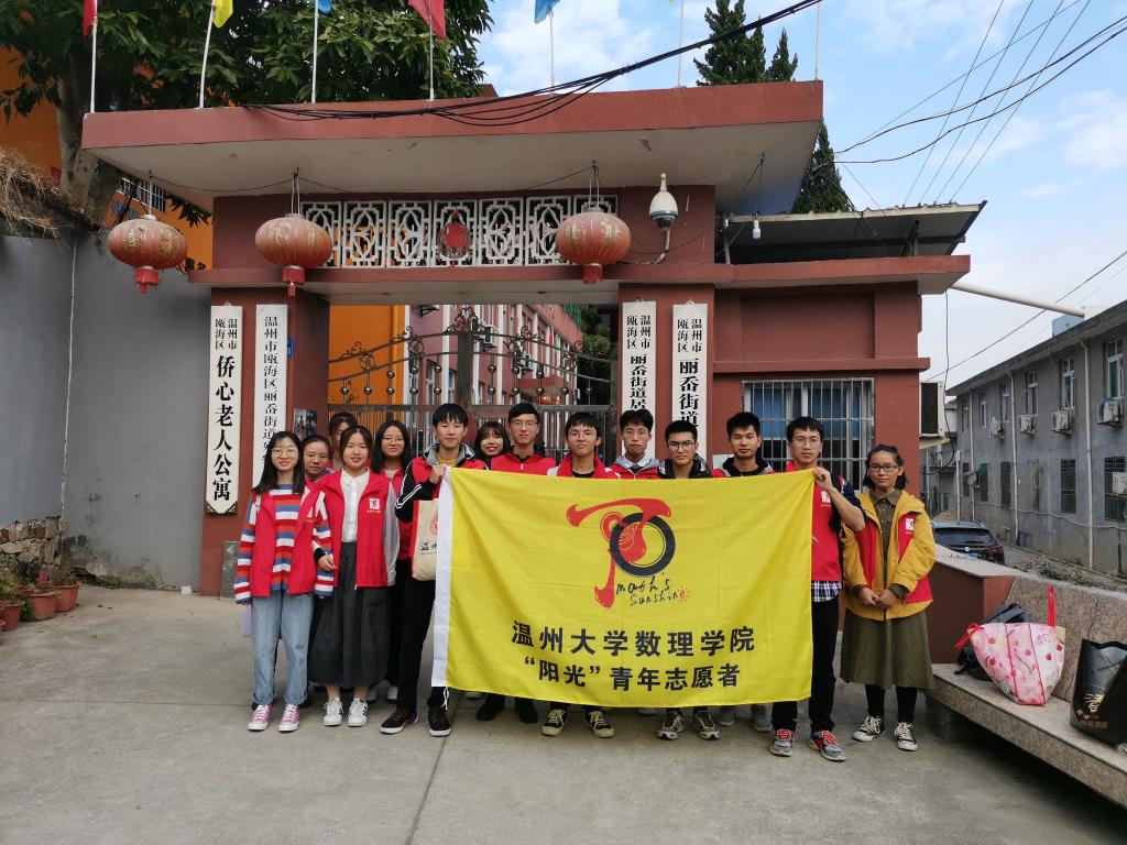 与阳光同行,与老人为伴。2019年12151300,3044永利阳光青年志愿者带领19应数专业的同学们前往丽岙老人公寓为那里的老人去了12月的温暖与祝福