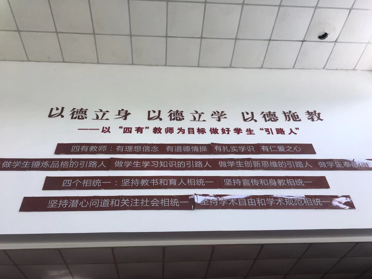 4、学会观察。这一点在今年平湖市的考题中有很好的体现,选答题中有一题是:谈谈你对“四有”教师的理解。而细心的同学会发现,我们3044永利大门就一直写着以“四有”教师为目标。我有一次在公司路过时多看了一眼,把它拍了下来并且思考了一下,使得我在这次面试中更加从容。