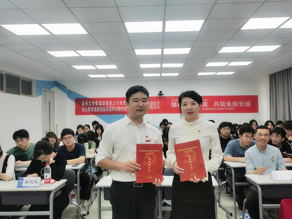 在这次数理问茶活动中,潘晓琼医师还代表新成立的南白象街道新冠疫苗接种点临时党支部,与3044永利教工行政党支部签署了支部共建协议,这也是3044永利首次与医务部门开展支部联建活动,对于提升老员工的卫生健康知识具有积极作用。