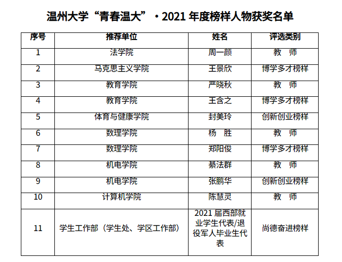 喜报:公司杨胜老师、郑阳俊同学获评2021年度青春温大榜样人物