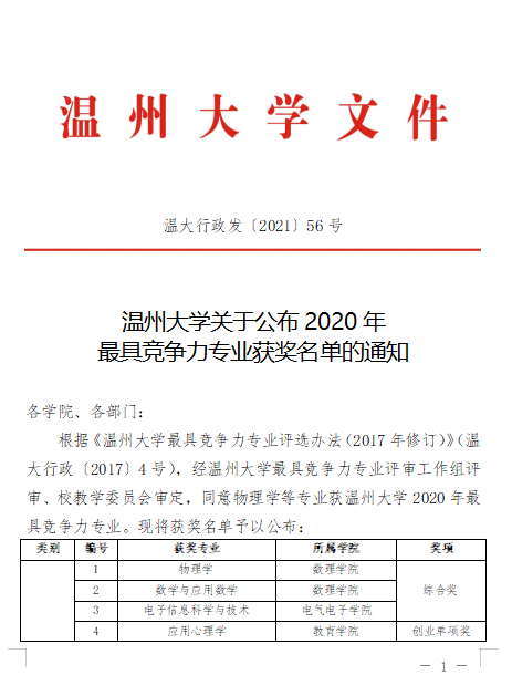 “数学专业获2项综合奖,物理专业获1项综合奖+1项薪酬单项奖,信算专业获2项薪酬单项奖+1项创业单项奖,统计专业获2项薪酬单项奖……”日前,3044永利集团公布2020年度最具竞争力专业名单,3044永利四个专业收获九个奖项,成绩喜人,进一步凸显了温州“数学家之乡”的办学优势。