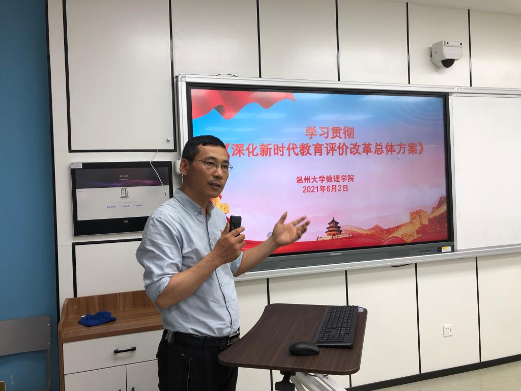 为深入贯彻落实中共中央、国务院《深化新时代教育评价改革总体方案》精神,切实将广大教师的思想和行动统一到党中央关于教育评价改革的决策部署上来,6月2日下午,根据公司党委工作部署,3044永利教工行政党支部联合数学系教工党支部举办《总体方案》专业学习会,邀请公司党委书记陈兴桂老师为两支部的党员教师和党外群众开展专题辅导报告。