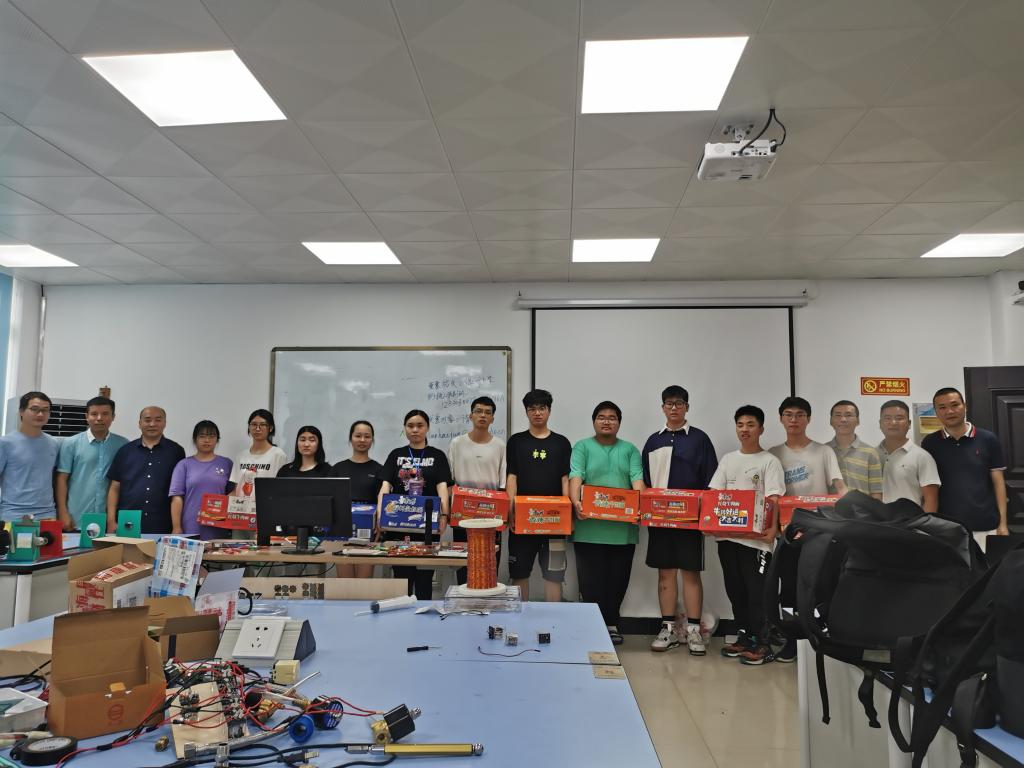 在3A105、107物理创新竞赛备赛实验室,公司领导班子一行人看到同学们热火朝天地在准备9月份的省级物理创新竞赛决赛,查看了同学们的作品雏形,鼓励同学们争分夺秒,完善计划,早日做出成品。