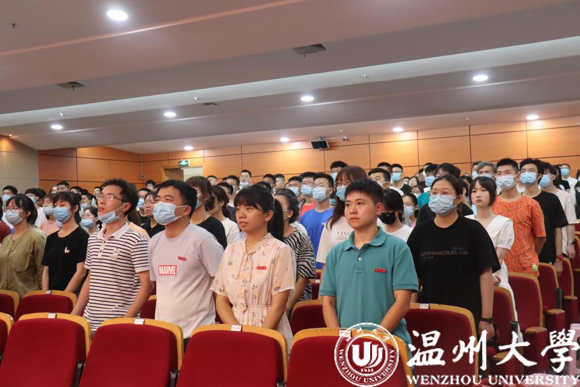 最后,2021级新生集体宣誓:作为一名温大新生,我将遵循“求学问是、敢为人先”的校训精神,依据“厚培德本、深濬智源”的求学之路,以“光大国族、造福人群”为人生追求,致力于品行提升和专业学习,努力做一名“重实践、强创新、能创业、懂管理、敢担当”的温老员工!
