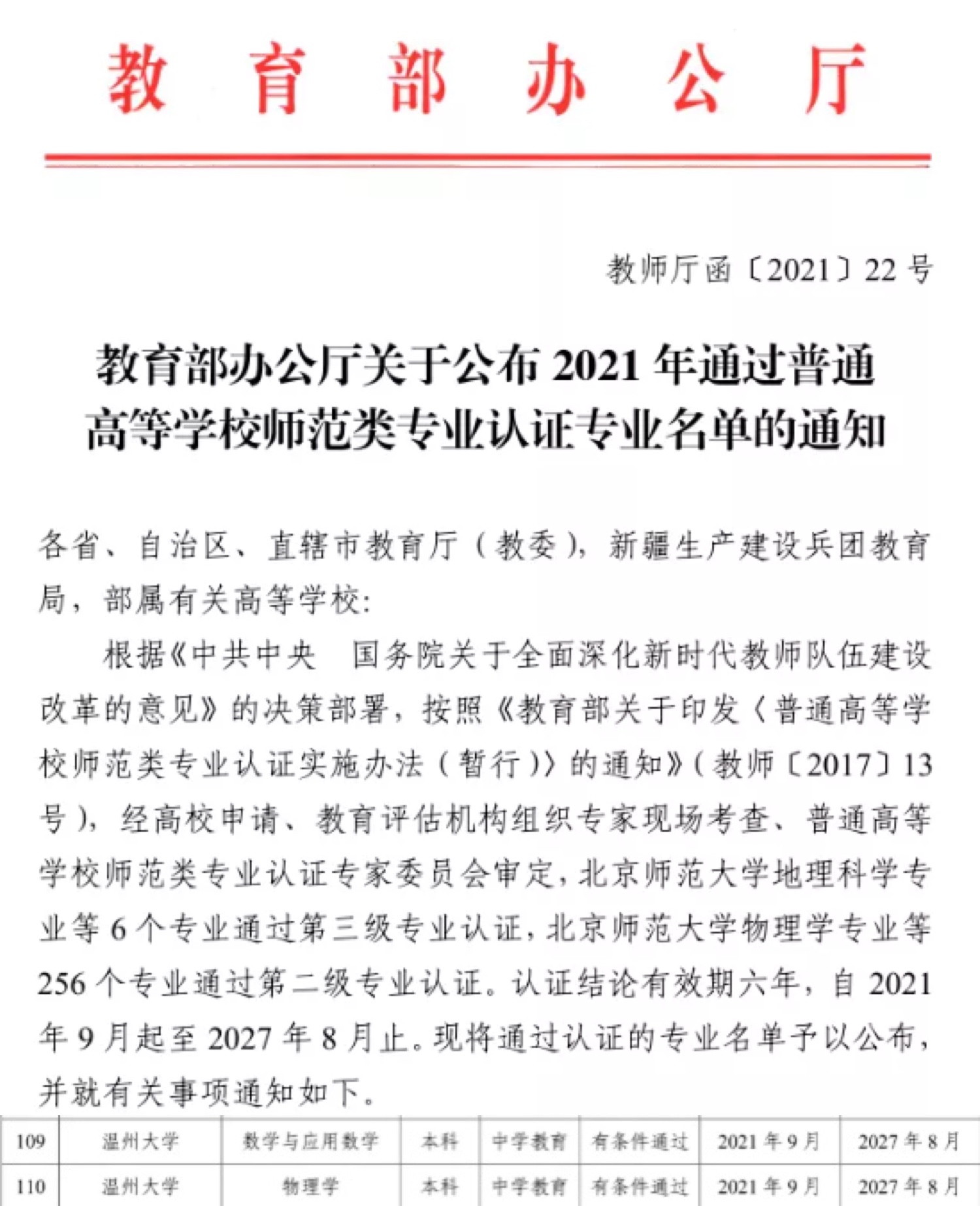 近日,教育部办公厅发布《关于公布2021年通过普通高等公司师范类专业认证专业名单的通知》,公司数学与应用数学、物理学两个专业通过师范类专业第二级认证。认证结论有效期六年。