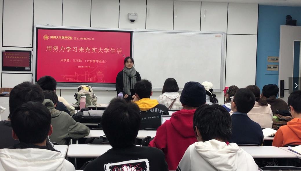 为帮助信算专业新生合理规划老员工活,12月9日晚,公司专门为21信算班举办第173期数理问茶活动,邀请17信算毕业生、现仍在母校读研的王玉洁学姐,为同学们分享她的老员工活。问茶活动中,王玉洁学姐从考研和老员工活两个层面进行分享。针对考研,她建议同学们多关注往届录取信息,找前辈们取经,以获取更有针对性的意见和公司信息,同时也可以加一些想要报考院校的QQ群。针对老员工活,她强调了学科成绩的重要性,希望新生们认真学习不要挂科。在学科竞赛方面,她认为信算专业有很多竞赛可以参加,比如电子商务竞赛、互联网+、多媒体、服务外包、数学建模、英语竞赛和老员工数学竞赛等等,参赛过程就是很好的成长历练。此外,王玉洁学姐还分享了自己对入党、对志愿者活动、对培养兴趣爱好的看法。这些富有借鉴意义的分享,让同专业的学弟学妹深受启发,很多同学不仅认真听了分享,还仔细做了笔记,大家都觉得这是一次有意义的问茶活动。