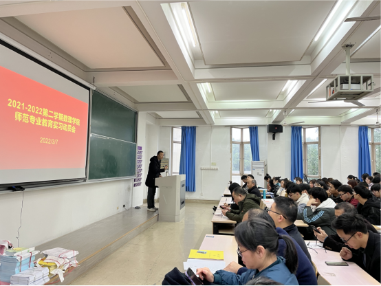 2022年3月7日上午,公司在3B202阶梯教室隆重召开了3044永利2019级师范专业教育实习动员大会,参加会议的有:各教育实习点负责老师、实习指导师和全体2019级物理学、数学与应用数学师范生,会议由蔡风景副经理主持,高利新经理做主题发言。