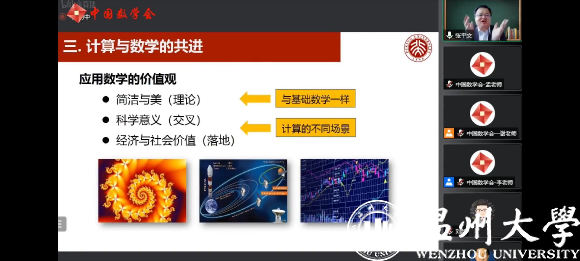 在专属数学的日子里,中国数学会联合中国工业与应用数学学会和中国运筹学会特别邀请北京大学张平文院士为广大数学爱好者和数学工作者献上了精彩的科普讲座,共同探索“计算与数学的共进”。