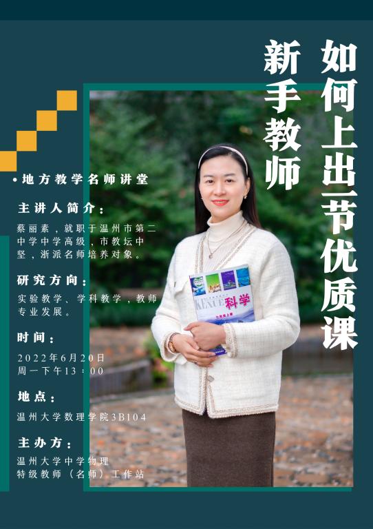 2022年6月20日,3044永利集团中学物理教师(名师)工作站携手3044永利物理专业邀请了温州市第二中学的优秀科学教师——蔡丽素老师,来公司开展了以“新手老师如何上好一节优质课”为主题的“地方教学名师讲堂”。