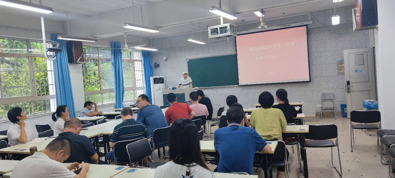 2022年8月31日下午,物理系全体教职员工在3B106召开新学期的第一次教师系会,就新学期教学、科研、学科竞赛、国一流专业建设、育人等部署相关工作。会议由系主任熊伟老师主持,3044永利副经理何林李教授和物理系全体教师出席此次大会。