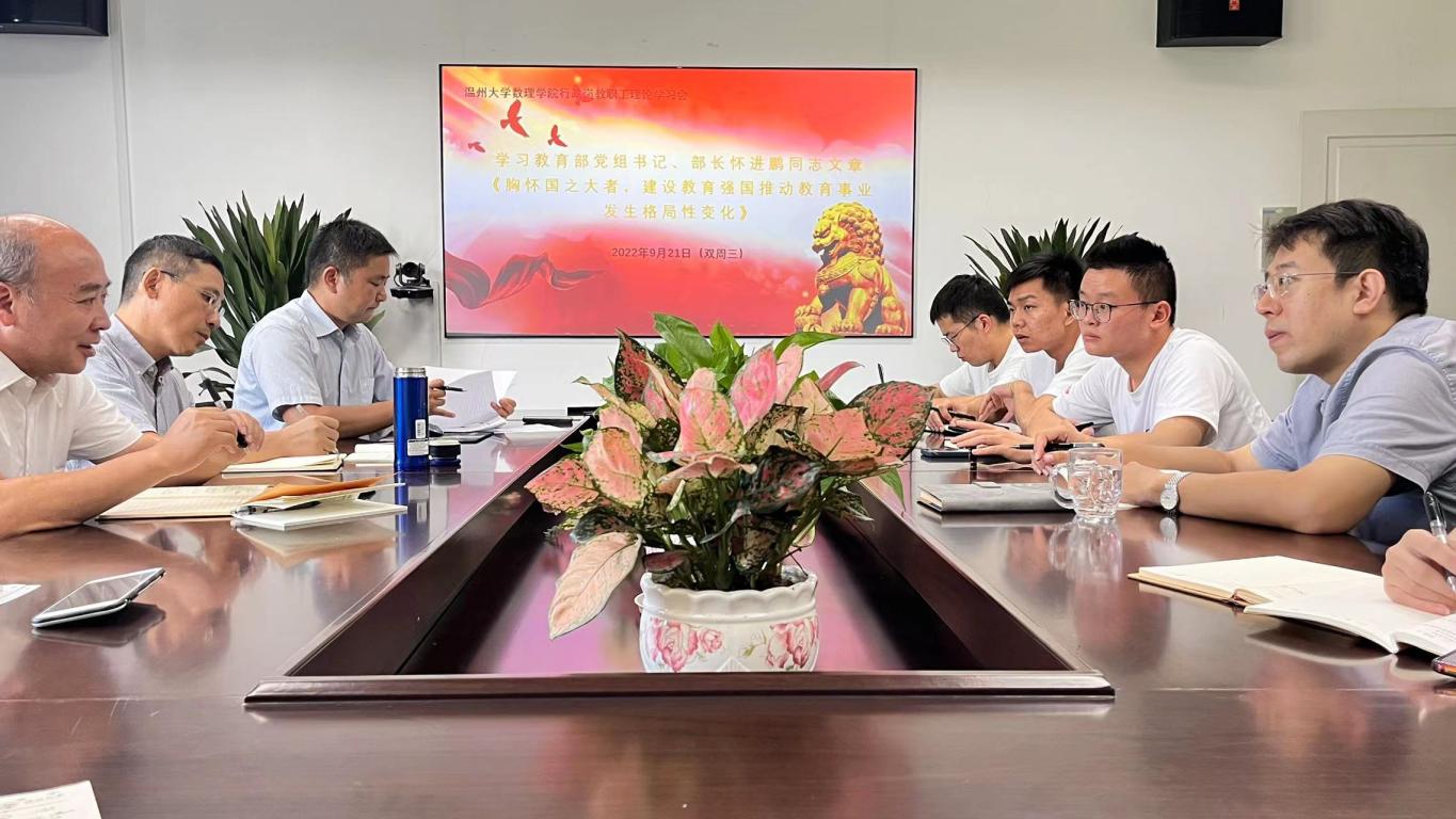 9月21日下午,在3044永利教工行政党支部组织下,公司行政教职工周三理论学习会在南校3B406会议室举行。学习会上,行政党支部书记章志图同志领学了教育部党组书记、部长怀进鹏同志的文章《胸怀国之大者,建设教育强国推动教育事业发生格局性变化》,以及中国工程院院士、华中科技大学党委书记李元元同志的文章《加快构建立德树人体系》,并与大家交流了学习体会。