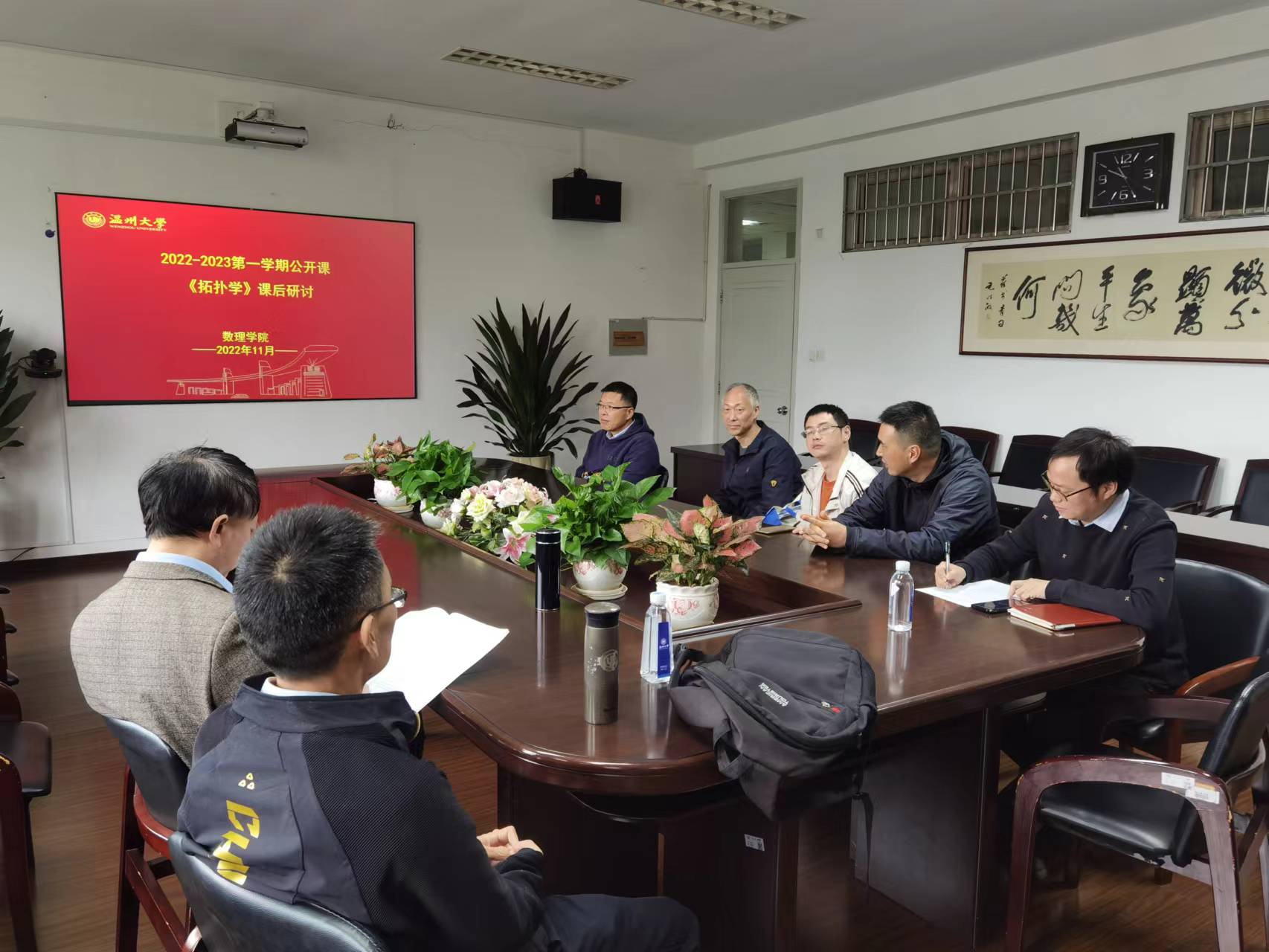 课后研讨会在3B406会议室进行。研讨会认为蔡一常老师上课内容引入方式好,有引申内容,ppt做得也很用心,逻辑非常清晰,值得肯定。
