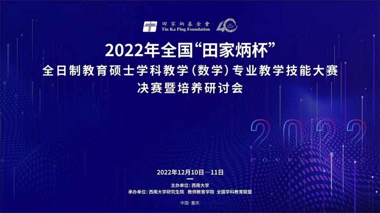 2022年12月10日,全国“田家炳杯”全日制教育硕士学科教学(数学)专业教学技能大赛决赛暨培养研讨会在线上成功举办。公司4名学子在指导老师的带领下,斩获一等奖1项,二等奖2项,三等奖1项。