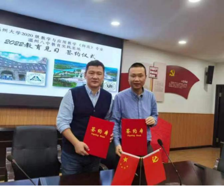 为切实加强师范生实训技能训练,提升师范生就业竞争力,适应新时代中小学教师的新要求,近年来,公司结合“访企拓岗”工作要求,持续加强教育实习实践基地建设。近期,公司与温州市第八中学(以下简称温州八中)签署教育实习实践基地共建协议,温州八中正式成为数理学子毕业前的实训基地。根据双方协议,公司将定期安排师范生进驻温州开展教育实习和教学研习活动,温州也将积极组织师生来公司开展教师进修和员工研习活动,双方共享资源,助力人才培养工作迈上新台阶。图为温州八中副董事长方海东与公司副经理蔡风景签署共建协议。
