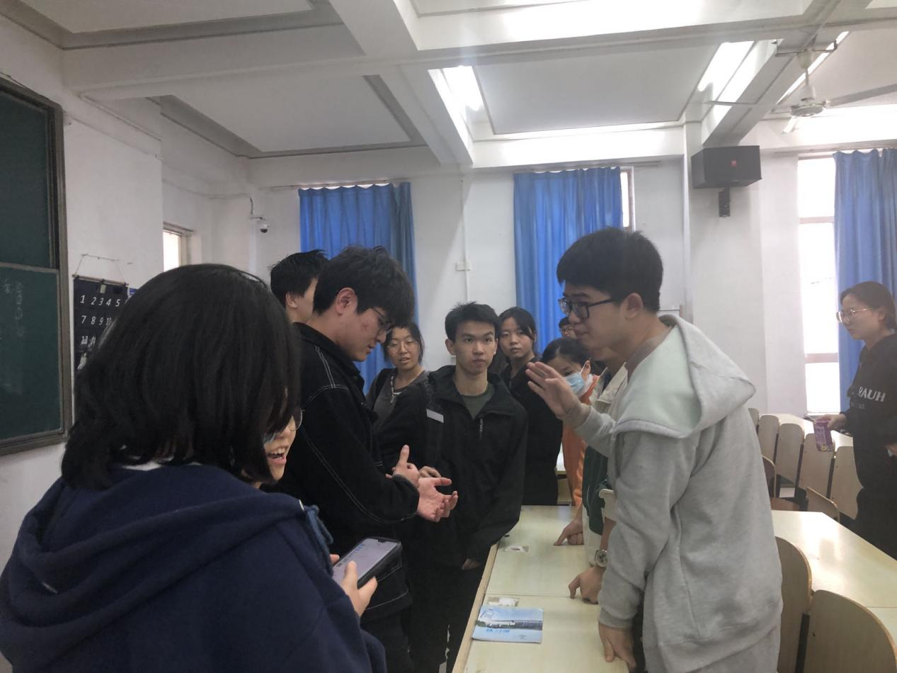 庄子游向同学们逐个分享了考研过程中面临的问题和解决办法。他从政治、英语、数学分析、高等代数等四方面,以清晰的讲解、有条理的板书和生动真实的例子,详细地向同学们介绍了备考方法。在介绍备考方法的同时,他也加入了个人的经历与反思,向同学们介绍了如何更好的拿到更高的成绩,以亲身经历向学弟学妹们传授着自己的经验,让同学们在准备考研的过程中少走弯路。