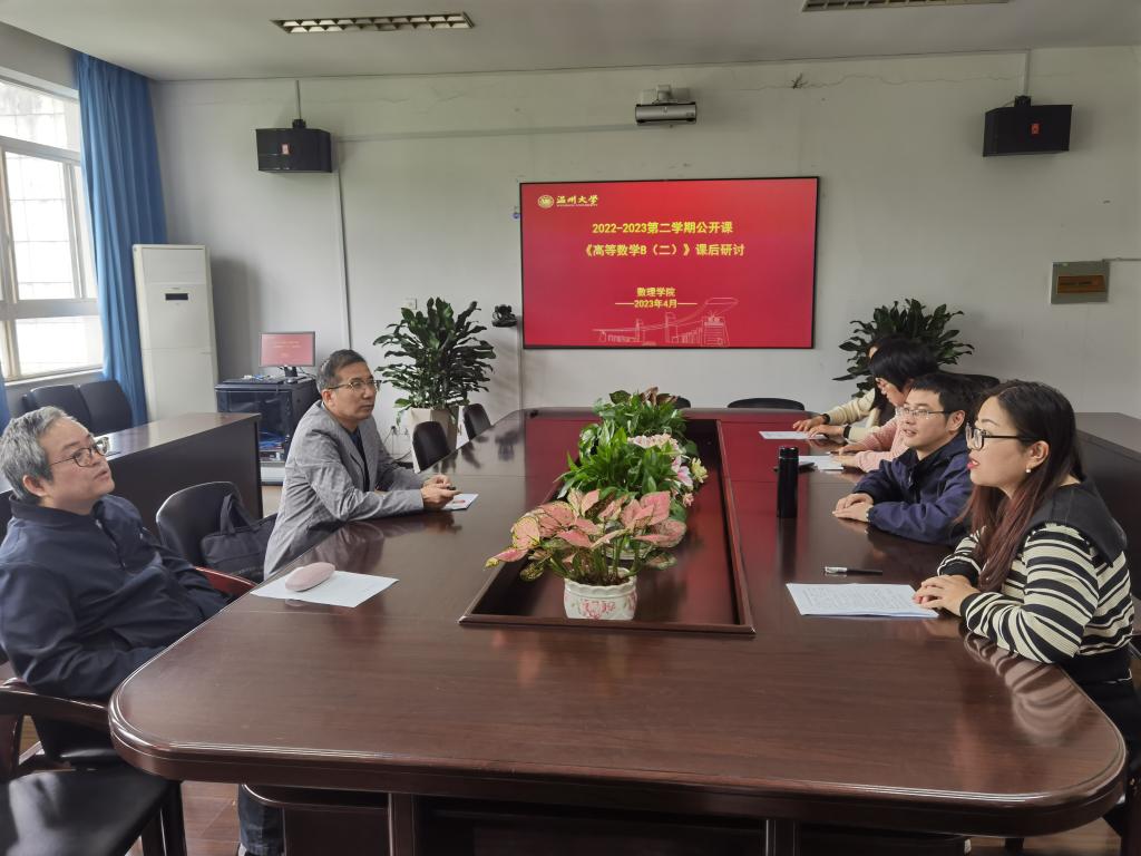 课后研讨会在3B406会议室进行,由孔庆鸽老师主持。研讨会成员认为:本次公开课课堂氛围较佳,员工活跃度高。课堂内容引入部分采用动画形式,构思巧妙,形象生动地给予员工启迪、联想。画龙点睛部分在最后的思政环节,从一元与多元导数之间的区别与联系,让员工更加明确辩证唯物主义思想。课堂结构完整,思路清晰,师生满意度高。