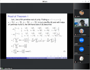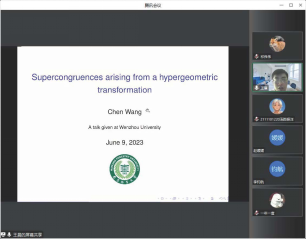 2023年6月9日下午,南京林业大学王晨副教授应邀在线作了题为“Supercongruences arising from a hypergeometric transformation”的学术报告。这场学术讲座由刘纪彩副教授主持,以及数学系部分研究生参加了这场学术报告。