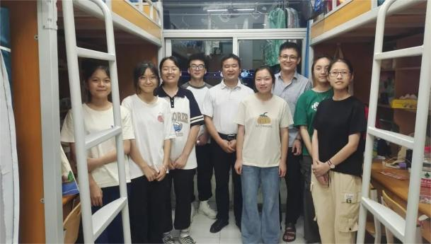 公司领导班子成员在公司辅导员、新生班主任的陪同下集中走访2023级新生寝室,为新同学送去公司的关怀和问候,寄予殷切的期望。
