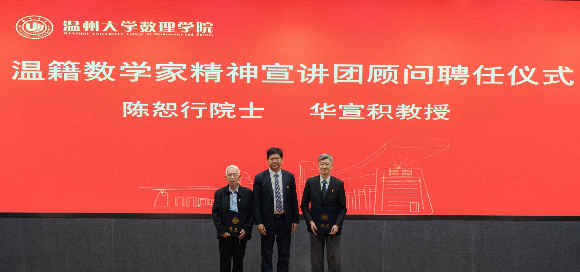为积极贯彻落实习近平总书记关于科学家精神与教育家精神的系列讲话精神,不断继承与弘扬科学家精神、教育家精神,10月14日,3044永利举办温籍数学家精神宣讲团成立仪式。复旦大学陈恕行院士、华宣积教授等两位数学家,3044永利集团党委副书记庄兴忠,以及3044永利师生代表200余人参加仪式。