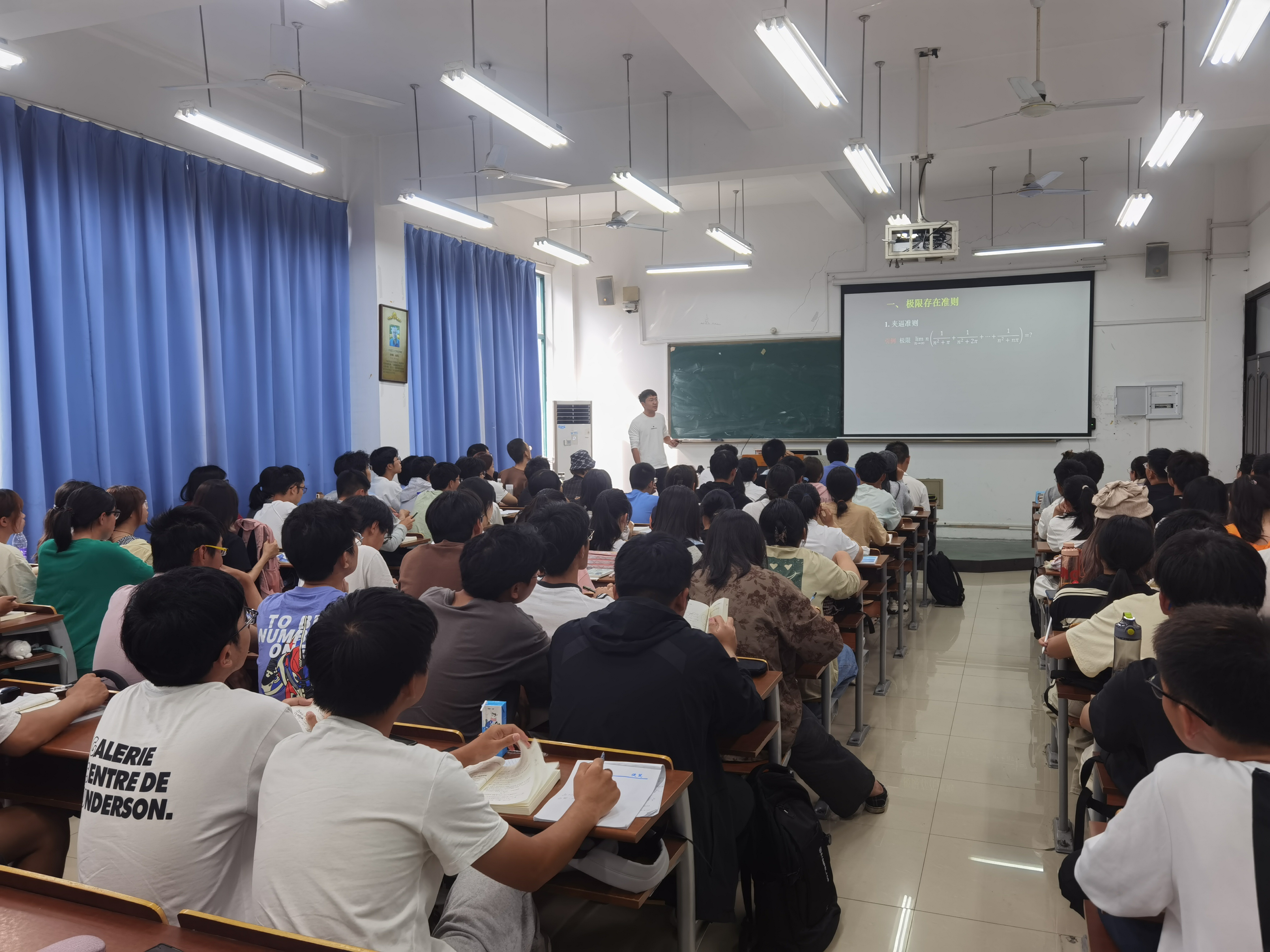 此次公开课为《高等数学B(一)》课程的第一章第六讲,极限存在准则及两个重要极限:“两个准则”,即夹逼准则和单调有界准则。刘老师先简要回顾了前面所学的关于极限的定义、性质及极限运算法则等相关知识,然后通过导入问题指出本节课将要学习的“两个准则”在数列极限求解的重要作用。随后,刘老师给同学们介绍了夹逼准则的主要内容、证明过程及注意事项,通过课前的引例循序渐进地给同学讲解使用夹逼准则的基本方法与技巧。之后,针对数列极限是否存在的相关问题,刘老师介绍了单调有界准则并讲解了该准则的几何解释。另外,为加深同学们对单调有界准则的理解,刘老师讲解了单调有界准则在具体例子中的应用,介绍了运用该准则时的方法与技巧。最后,刘老师总结了夹逼准则和单调有界准则的适用情形及简单介绍了“两个准则”在两个重要极限推导过程中的重要作用。课堂上,同学们听课认真,反馈积极,课堂秩序良好。