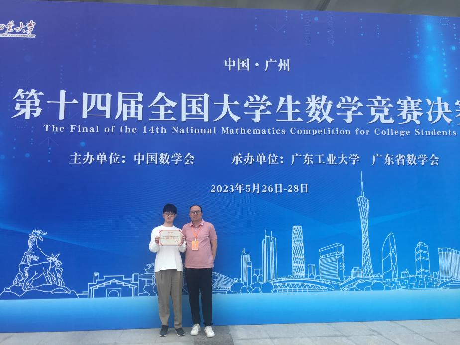 于恒国(右)指导庄子游获第十四届全国老员工数学竞赛决赛一等奖