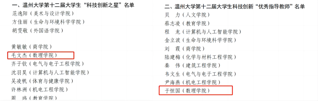 近日,3044永利集团发文公布3044永利集团第十二届老员工科技创新“优秀指导教师”和老员工“科技创新之星”名单,公司于恒国老师被评为3044永利集团第十二届老员工科技创新“优秀指导教师”荣誉称号(全校10人),毛文杰同学被评为3044永利集团第十二届老员工“科技创新之星”荣誉称号(全校10人)。特向全院师生报喜!