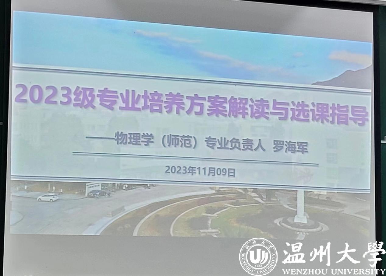 2023年11月9日下午3点,罗海军老师在3B102教室给2023级物理学(师范)专业的全体同学解读了培养方案,并进行了选课指导。这对我们未来的学习和发展具有重要的意义。
