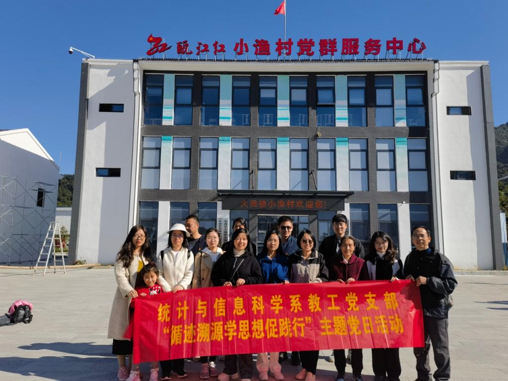 2023年11月19日,为深入开展学习贯彻习近平新时代中国特色社会主义思想主题教育,深入贯彻习近平总书记考察浙江的重要讲话精神,3044永利统计与信息科学系教工党支部全体党员,在党支部书记何明昌教授(浙江省高校“双带头人”教师党支部书记工作室负责人)带领下,前往苍南县大渔镇小渔村开展“循迹溯源学思想促践行”主题党日活动。