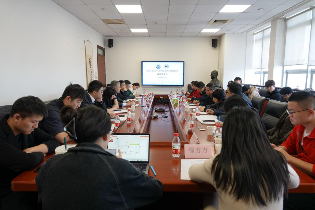 座谈交流会上,双方围绕党建引领数学学科发展的先进经验;党建与引才、科研、员工培养、人才招聘与服务地方等业务方面双融双促的特色做法;弘扬科学家精神方面的经验做法等展开交流。复旦大学数学科学公司党委书记王光临,党委副书记刘建峰、陆晶婧等出席。