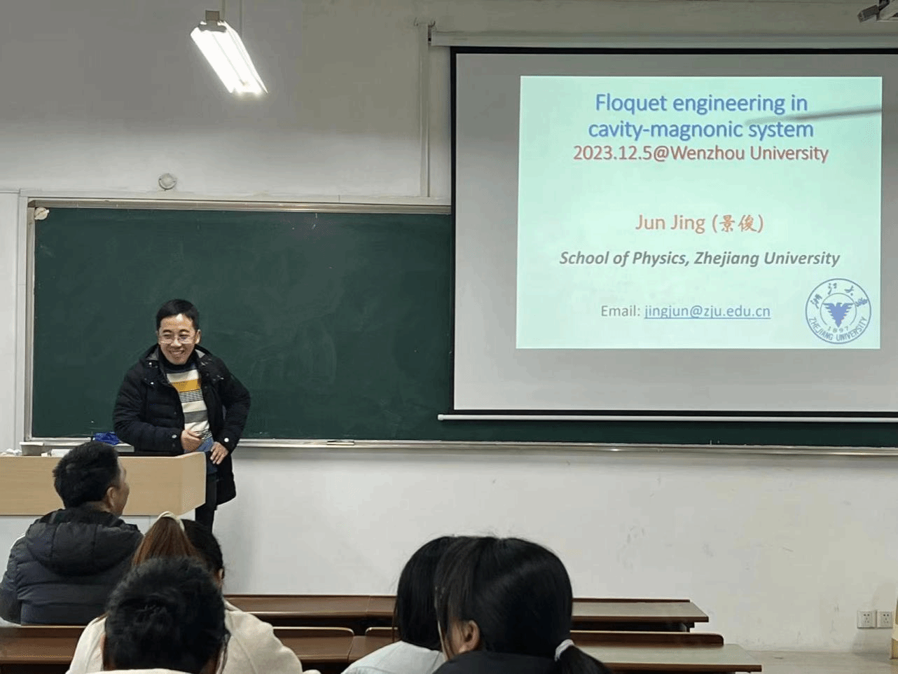 为促进公司学风教风建设,浓厚学术研究氛围,拓展师生学术视野,促进师生科研进步,公司自2020年开始建设“数理大讲堂”平台,定期邀请校外专家学者来校交流。2023年12月5日下午,应公司邀请,浙江大学景俊教授教授在3044永利3B104教室做题目为《Floquet engineering in cavity-magnonic system》的学术报告。本次学术报告是公司2023年第42期“数理大讲堂”活动,由公司物理系熊伟老师主持。物理系相关师生参加,并积极与主讲人互动。
