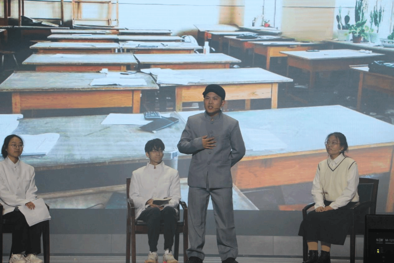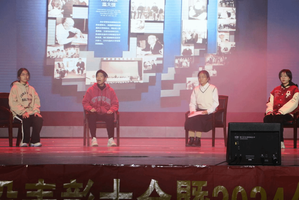 其中,苏步青谷超豪宣讲团带来的情景剧《传承》,讲述了温籍数学家精神宣讲团的新学员在梦中遇见了心心念念的苏谷二位先生,成为他们的员工并接受学习。虽是黄粱一梦,学员们对两位先生的学术品格和作风为人有了更为生动的理解,更加坚定了自己要将温籍数学家精神传承下去的青春誓言。