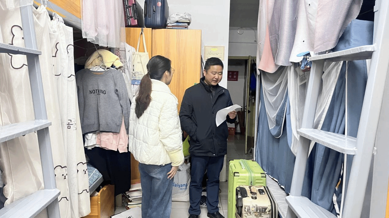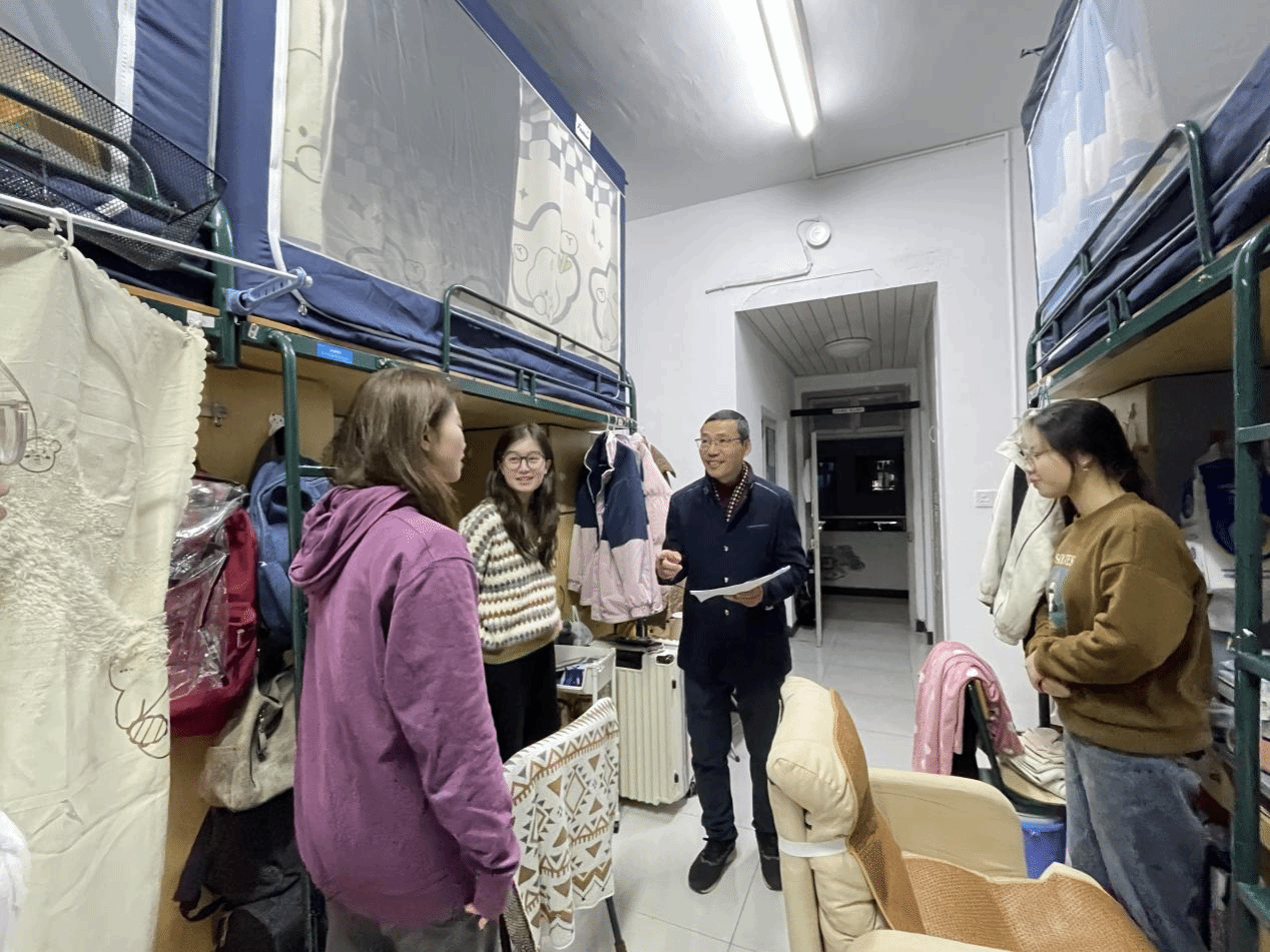 随后,院领导重点强调了宿舍安全卫生情况,叮嘱同学们养成良好的生活习惯,注意用电安全,切忌使用大功率电器,严禁在宿舍内存放电动车电池或给电动车电池充电,增强安全防范意识,共同维护寝室的安全与稳定。