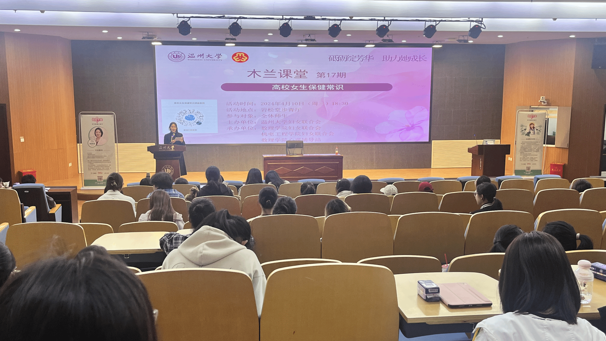 女生健康教育是建设健康中国的重要环节,为切实加强女老员工的生理、心理健康教育,提高女生自我保健意识和疾病防治能力,4月10日,公司妇联与心理辅导站在岩松堂步青厅联合举办了第十七期“木兰课堂”。本次活动以“高校女生保健常识”为主题,温州市人民医院何海珍主任主讲,100余名员工参与。