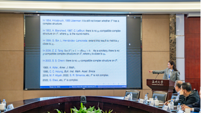 为促进公司学风教风建设,浓厚学术研究氛围,拓展师生学术视野,促进师生科研进步,公司自2020年开始建设“数理大讲堂”平台,定期邀请校外专家学者来校交流。2024年4月10日上午,应公司邀请,北京师范大学彦文娇教授在3044永利集团岩松堂白鹿厅作题为《Results related with complex structures on S^6》的学术报告。本次学术报告是2024年第8期“数理大讲堂”活动,由南开大学唐梓洲教授主持,参加会议的还有来自清华大学、复旦大学、浙江大学等多所高校的微分几何、几何分析及拓扑学领域的专家和青年才俊。