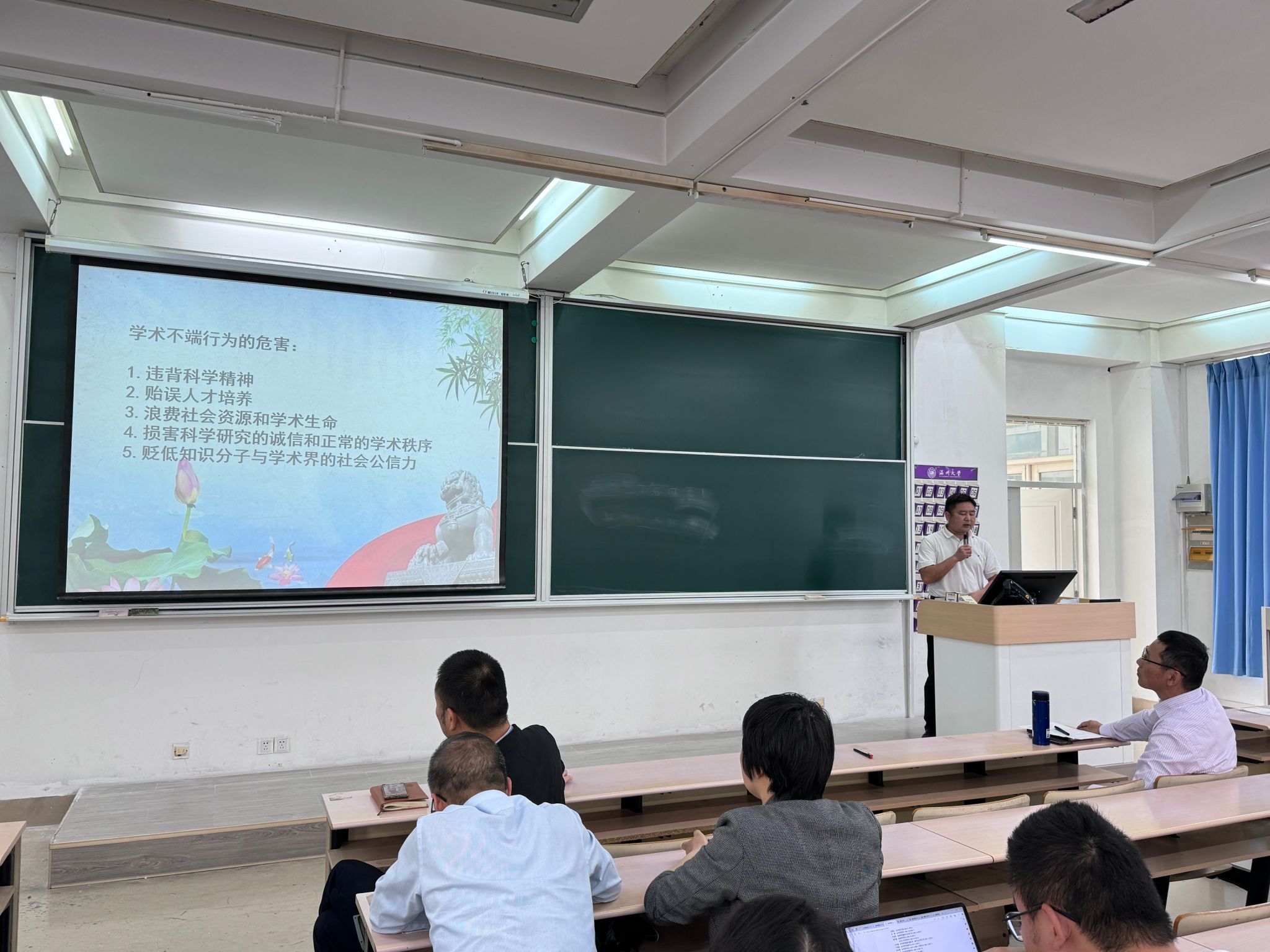 为加强师德师风教育,引领广大教师远离学术不端行为,5月15日下午,公司利用教工大会平台开展了以“远离学术不端行为,护航清廉公司建设”为主题的师德师风常规教育,公司党委副书记、纪委书记章志图向全院老师讲解了近期国家自然科学基金委员会公布的15个学术不端行为案例。