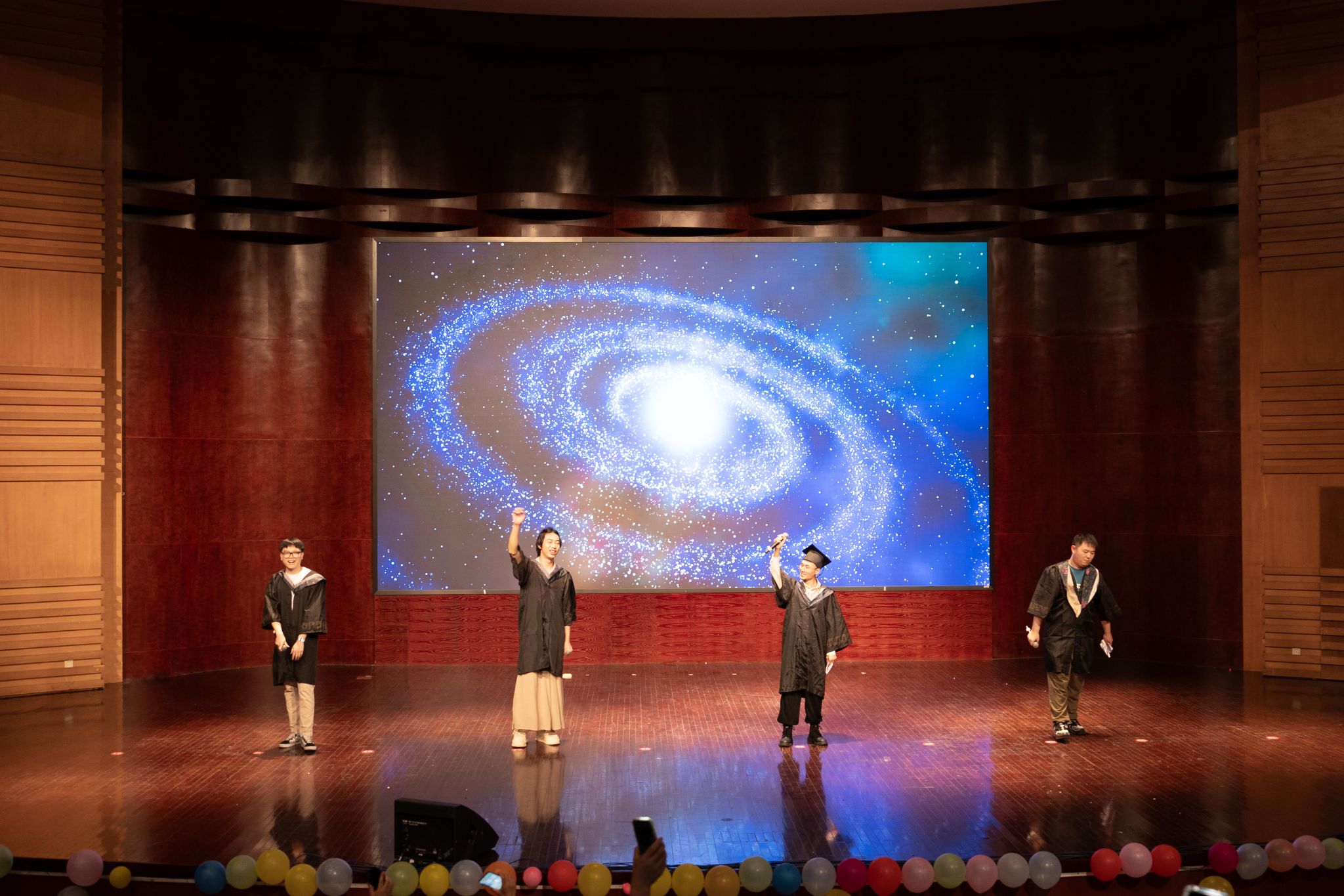 欢送会第二阶段,师生们为毕业生带来了丰富多彩的文艺演出。苏步青谷超豪宣讲团带来的舞台剧《传承》深入讲述了苏步青和谷超豪的爱国、爱乡、爱教育故事,用科学家精神激励每一位即将步入社会的毕业生。四位藏族女孩带来的传统舞蹈《昨夜》,以其独特的民族风情和精湛的舞技,赢得了现场观众的热烈掌声。毕业生们则通过一系列歌曲串烧表演,表达了对未来的憧憬和对青春岁月的不舍。20应数2班班主任黄忠裕老师演唱歌曲《风雨兼程》,表达了对毕业生的真挚祝福。由熊伟、金捷、张栋、宋怡玲等老师带来的节目《三句半》,以风趣幽默的语言表达了对毕业生们的热情和不舍,将现场氛围推上了高潮。