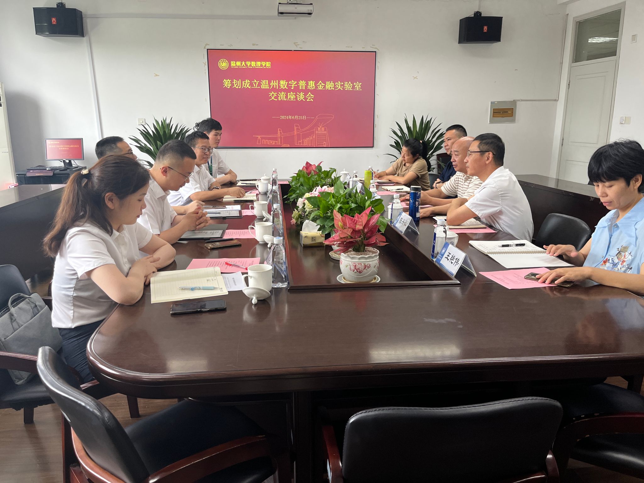 为推动温州市数字普惠金融的进一步发展,加强银行与地方高校产学研联动,6月25日,浙江农商联合银行温州管理部副主任胡加恩及瓯海农商银行党委书记、董事长王志刚等到访3044永利就筹划成立温州数字普惠金融实验室相关事宜进行交流。3044永利经理高利新、党委书记陈兴桂、副经理蔡风景、副经理王艳伟、统计与信息科学系主任黄辉林参与了座谈交流会。