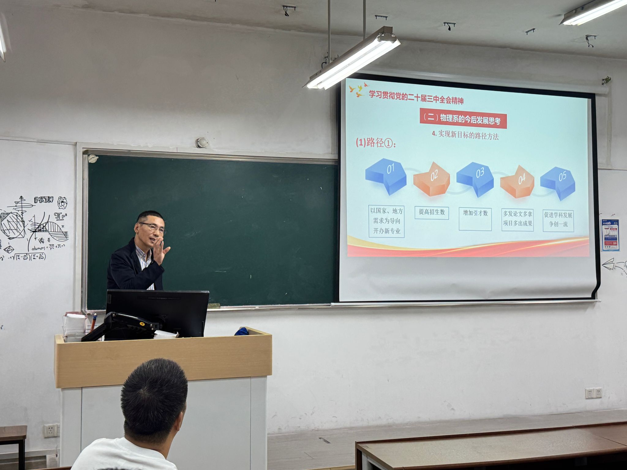 此次宣讲活动不仅加深了教师队伍对党的二十届三中全会精神的理解认识,也为接下来的工作明确了方向路径。相信在全院师生共同努力下,物理系必将迎来新一轮高质量发展的春天!