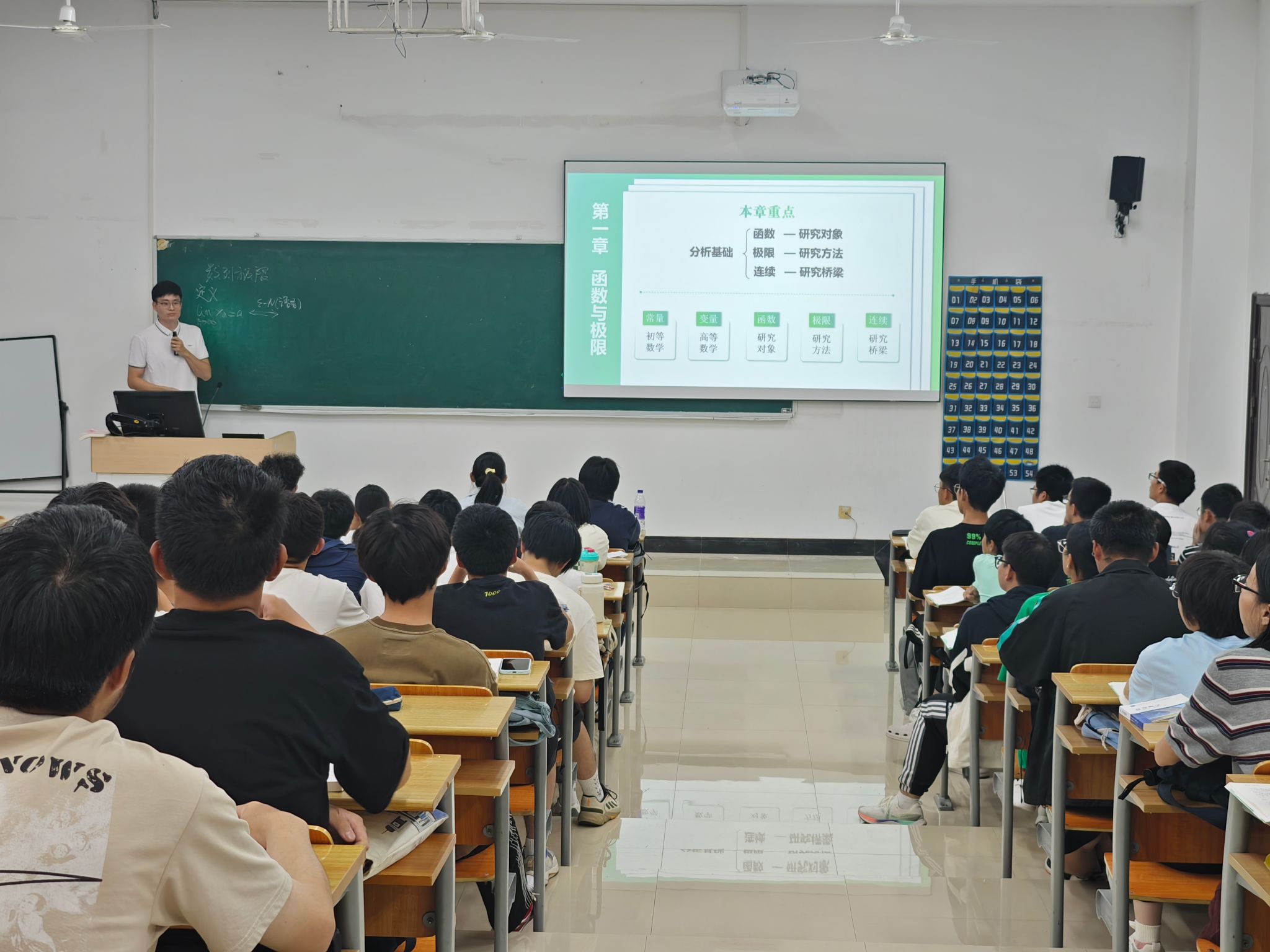 在这次公开课中,赖彭超老师讲授的是《高等数学A(一)》第一章“函数的极限”。课程伊始,赖老师首先回顾了数列极限的相关内容,包括数列极限存在的定义及其性质。他指出,数列极限是函数极限的一种特殊情形,由此引出了更为一般的函数极限的概念,包括其定义和相关性质。接着,赖老师通过三个具体的实例,逐一演示了如何利用极限定义来验证极限的存在与否,使同学们在实际操作中加深了对极限概念的理解与应用。最后,赖老师对比总结了数列极限与函数极限之间的关系,进一步加深了同学们对极限概念的理解。