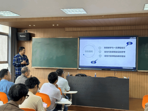 报告中,王教授主要围绕如何构建一流课程,以线性代数课程为例展开讨论。讲座分为三部分,首先介绍了教育数学的理念,强调数学教学不仅要传授知识,还要培养员工的创新思维和问题解决能力。接着,王教授详细分析了线性代数课程的建设,从课程内容、教学模式、教材编写等多个角度探讨如何提升课程的学术挑战性和应用性。最后,讲座提到要注重将数学文化和科研方法融入教材,以激发员工的学习热情,提升他们的实践能力。