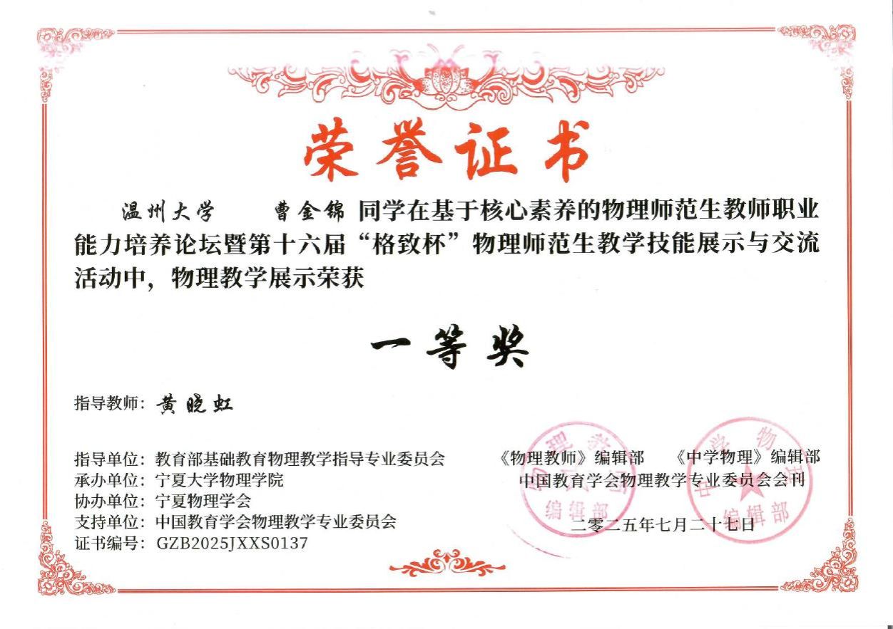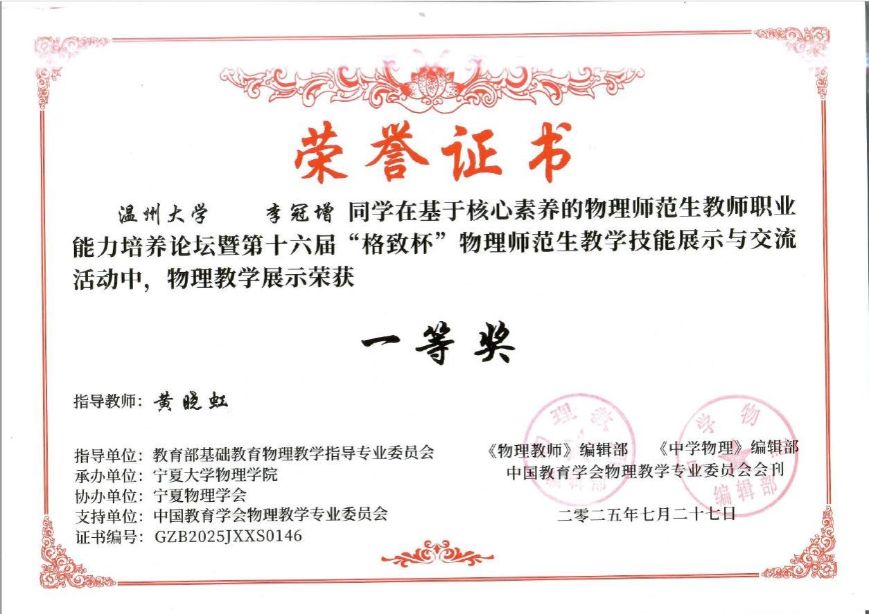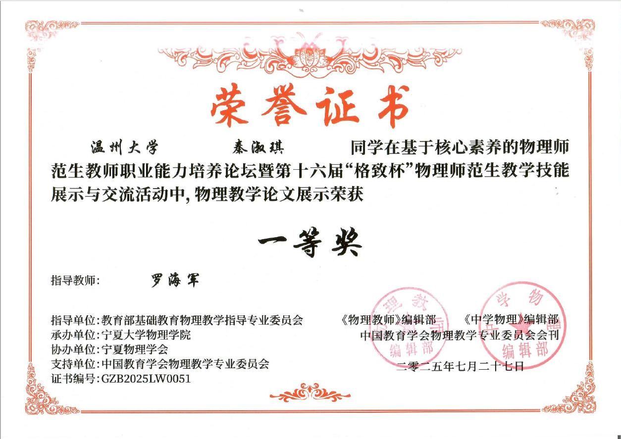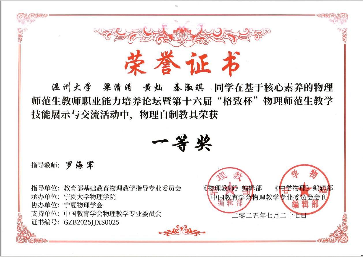2025年7月27日,第十六届“格致杯”物理师范生教学技能展评活动大赛在宁夏大学落下帷幕,公司本科生和研究生学子在本届赛事中表现出色,共获得一等奖5项、二等奖8项、三等奖3项的佳绩。