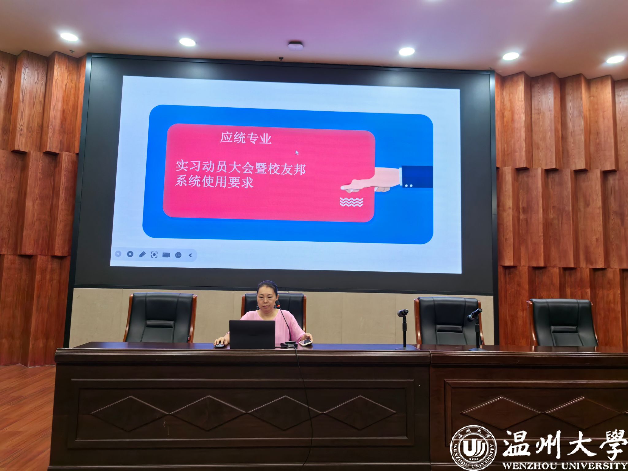 随后,会议第二议程特别面向应用统计学专业、信息与计算科学专业的学生,召开了实习动员专题会议,由教学科罗素芹老师重点介绍了“员工邦”实习管理系统的使用规范与操作流程。会议明确了实习过程中的纪律要求、安全须知、周志撰写、成绩评定等具体事项,提醒同学们尽快熟悉系统功能,按时完成实习岗位绑定、过程记录与材料提交,确保实习工作顺利、高效推进。