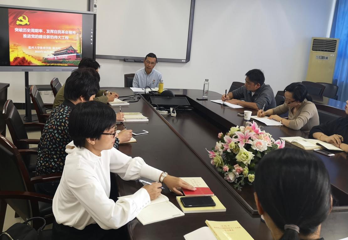 “不忘初心、牢记使命”主题教育开展以来,3044永利教工行政党支部一直按照既定计划有条不紊地开展“每周一学”活动,不断夯实支部的战斗堡垒基础。2019年11月1日下午,应党支部邀请,公司党委陈兴桂书记为党员老师们带来了一场精彩的党课:《突破历史周期率,发挥自我革命精神,推进党的建设新的伟大工程》。在这节党课中,陈兴桂书记以丰富的史实素材和紧贴公司实际的例子,为大家讲解了什么是历史周期率、如何突破历史周期率、突破历史周期率的关键、我们的责任担当等四方面内容,其中许多史实都是大家第一次听说,让人受益匪浅。